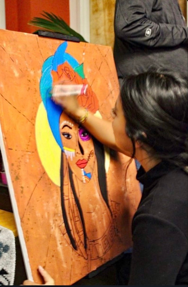 Diana Diaz is a self-taught Mexican artist who established the brand Diaz Arte in 2018. Her brand and artistic vision are rooted in her upbringing in San Francisco, particularly in the Mission District, along with her culture and community. Diana's work is a genuine reflection of her pride in her heritage, interests, and life experiences.